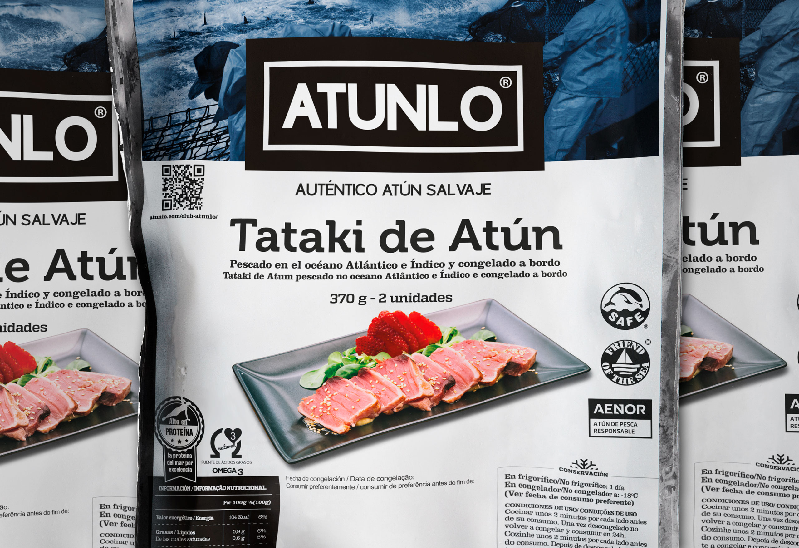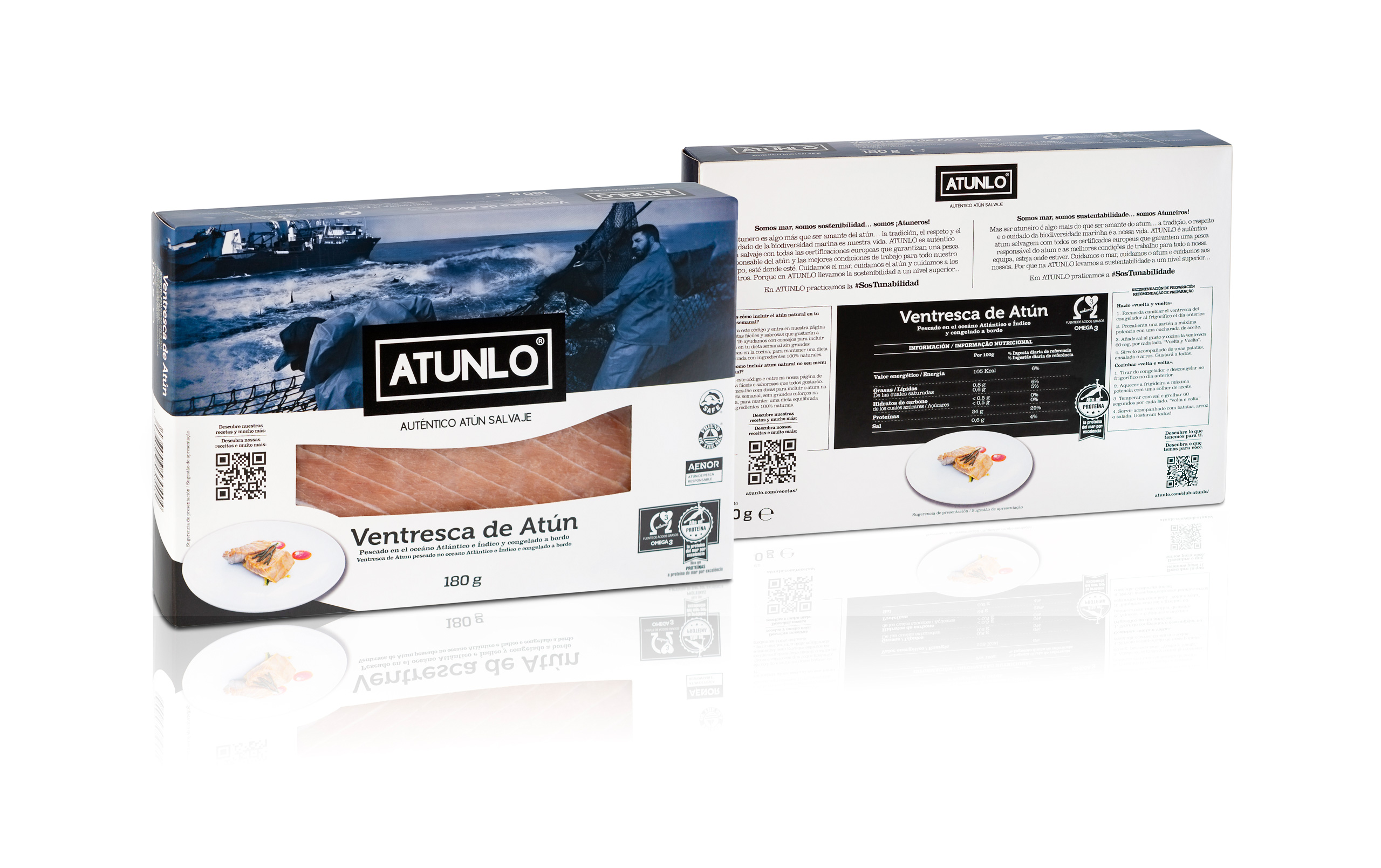 La línea de packaging tenía que ser el principal canal de comunicación con el consumidor y por ende trasladar los significados que serán la base de construcción de la marca al consumidor final: origen, sostenibilidad, calidad, práctico y nutritivo. Unos atributos que casan con las tendencias de consumo actuales y que el propio producto posee de manera intrínseca. El diseño lo protagoniza una imagen de la pesca del atún salvaje en alta mar. En duotono se compone de su color corporativo pero a la vez aporta connotaciones de producto Premium o de calidad. Tras una concepción global de la imagen se comenzó a trabajar de lo particular a lo general consiguiendo de esta manera una gran riqueza en los detalles gráficos, con un cuidado muy especial de la tipografía para tratar al consumidor con respeto y de una manera muy humana. El resultado es una línea de packaging bien diferenciada que comunica de manera eficiente la calidad de su contenido.